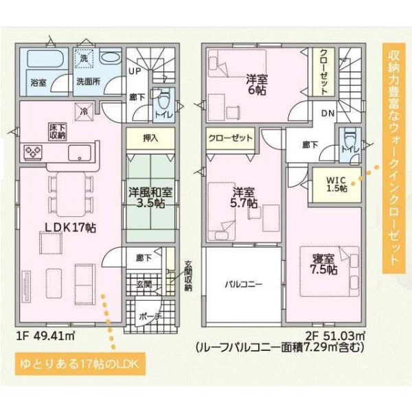 設備 | 都市ガス、システムキッチン、カウンターキッチン、浄水器、トイレ2箇所、温水洗浄便座、浴室乾燥機、複層ガラス、ルーフバルコニー、床下収納、駐車2台可、ディンプルキー、モニタ付インターホン、火災警報器等設置済 | ||