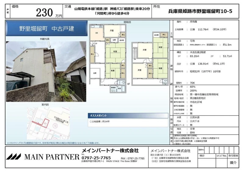 山陽電鉄本線 山陽姫路駅 神姫バス「河間町」 20分 徒歩4分 |