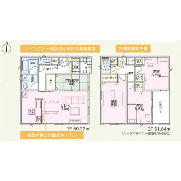 設備 | 都市ガス、システムキッチン、カウンターキッチン、浄水器、トイレ2箇所、浴室乾燥機、ルーフバルコニー、床下収納、モニタ付インターホン、火災警報器等設置済 | ||