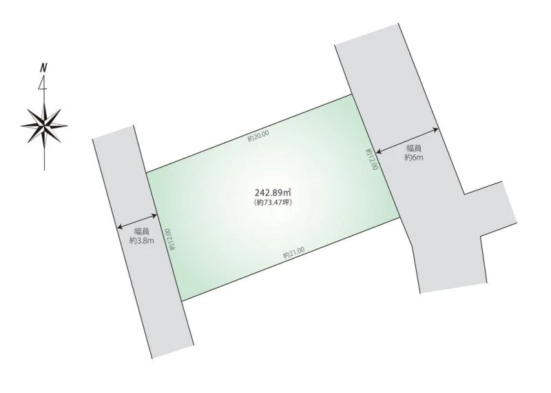 二方(除角地) 東 間口12m 公道 幅6m 西 間口12m 公道 幅3.8m |