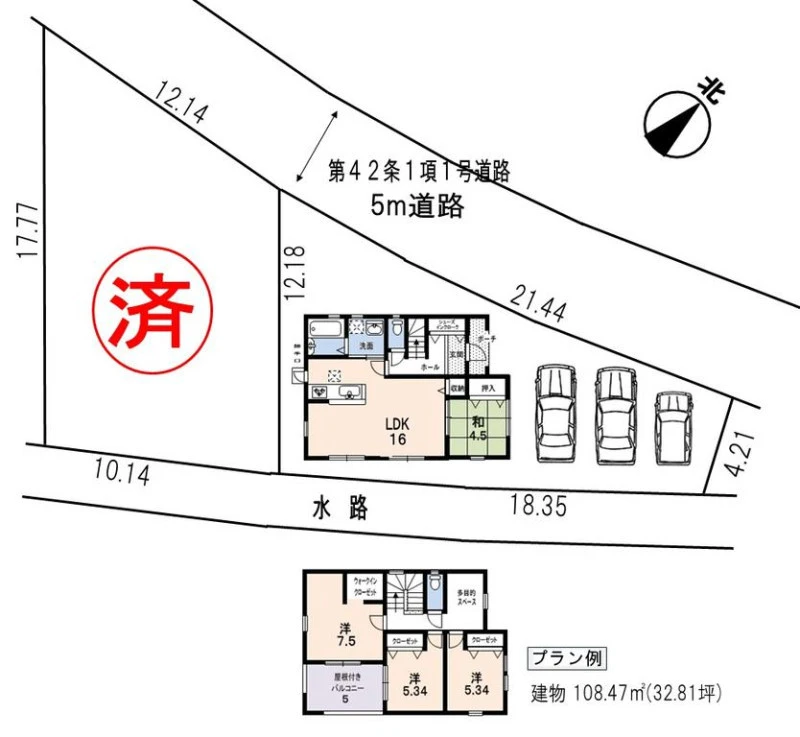 一方 間口21.4m 公道 幅5m |