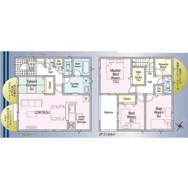 | 設備 | 都市ガス、電気、上水道、下水道、システムキッチン、カウンターキッチン、浄水器、給湯、トイレ2箇所、温水洗浄便座、シャンプードレッサー、浴室乾燥機、フローリング、複層ガラス、ルーフバルコニー、収納スペース、ウォークインクローゼット、床下収納、ディンプルキー、モニタ付インターホン、火災警報器等設置済、建設住宅性能評価取得(予定含む) | ||