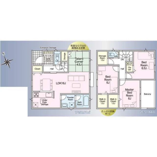 | 設備 | ガスその他、電気、上水道、下水道、システムキッチン、浄水器、IHクッキングヒーター、給湯、トイレ2箇所、温水洗浄便座、シャンプードレッサー、浴室乾燥機、フローリング、照明器具付き、複層ガラス、ルーフバルコニー、オール電化、収納スペース、ウォークインクローゼット、床下収納、ディンプルキー、モニタ付インターホン、火災警報器等設置済、建設住宅性能評価取得(予定含む) | ||